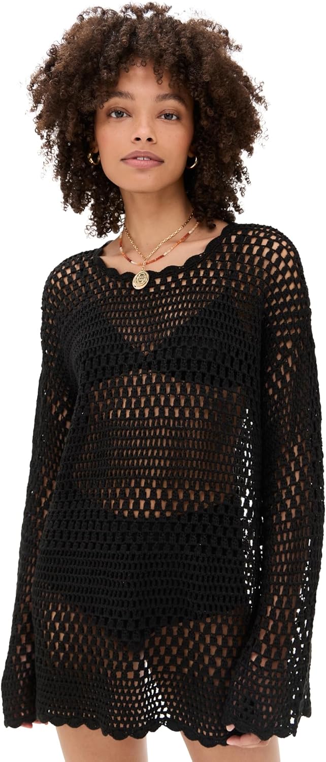 Feel chic in this white crochet pullover! Wear the Paula as your new favorite swim cover-up or throw it on over a tank for an easy warm weather look. Pair back to your favorite Mumu denim!