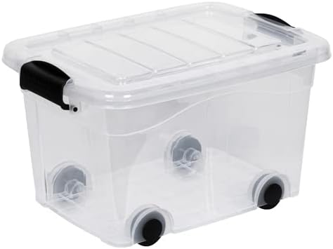 Storage Boxes with Lids and Wheels Clear Construction Made of Durable Plastic Available in Various Sizes (Choice) (20 Litres)