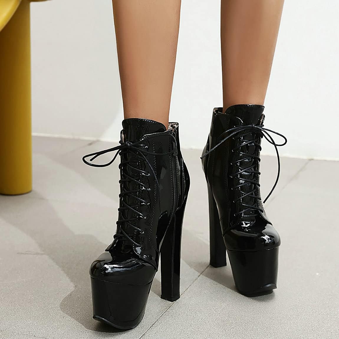 Trendenzy Womens Extreme High Heel Lace Up Block Heel Platform Ankle Boots Sexy Unique Features: Soft Synthetic Material; Adjustable Lace Up; Fashion Zip Up; Snake Print Sexy Color: Black/Snakeskin White Heel Type: Super High Heel Heel Height: 16.5cm=6.49inches Platform: 6.5cm=2.55inches Shaft Height: 10cm=3.93inches Circuit: 21cm=8.26inches Toe Type: Closed Toe Match Tips: This shoes is easy to match and suitable for lolita, cosplay, uniform, wedding, shopping and other occasions. If you have any questions, please contact "Trendenzy" immediately.