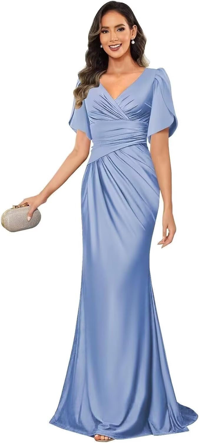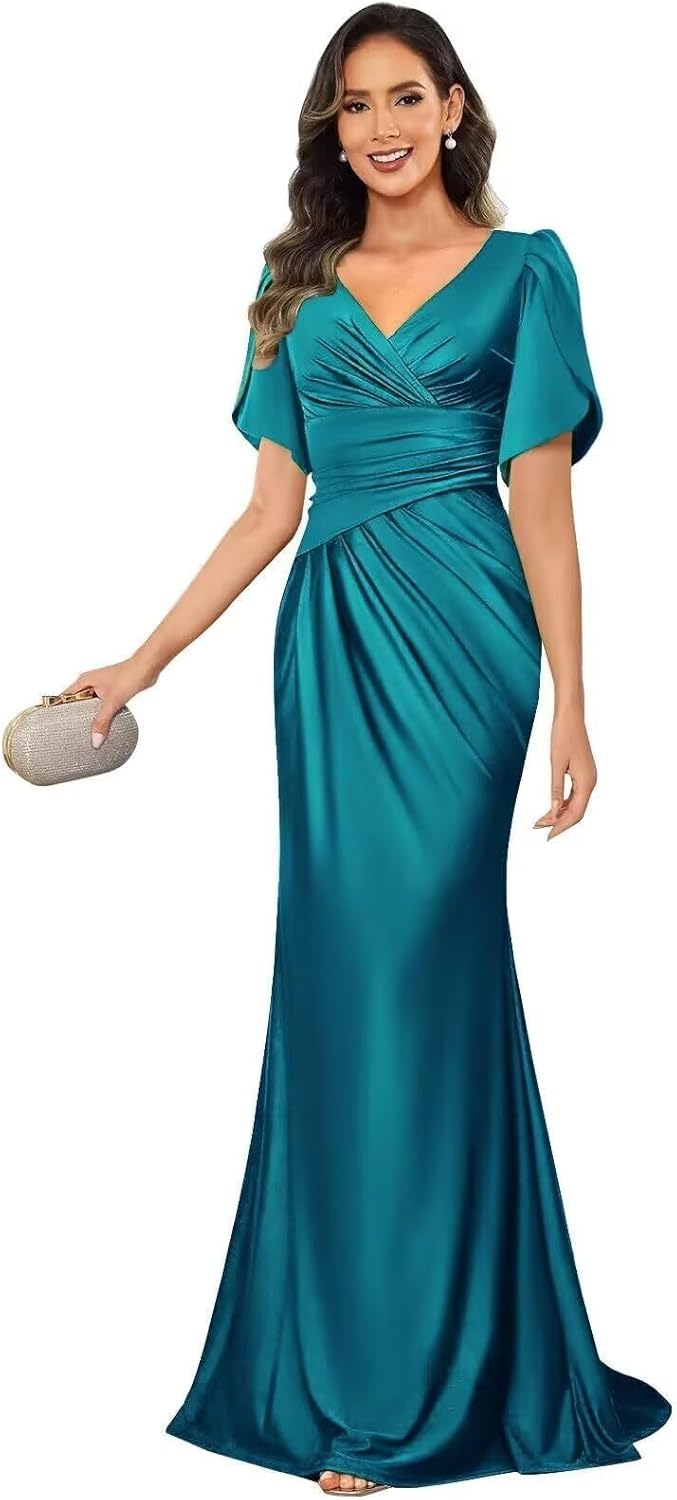 | Fabric Type | Elegant mermaid satin mother of bride evening dress |