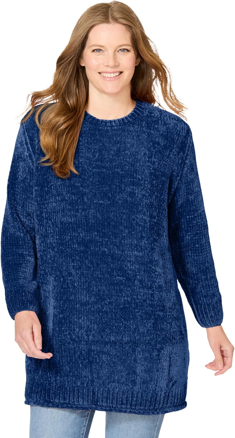 So soft, plush and warm, you’ll live in this cozy chenille sweater during the cooler months. Made in a classic, relaxed silhouette, this piece goes with just about anything. Add some lustre and texture to your sweater collection. 32" length br> Poly, imported br> Machine washable
