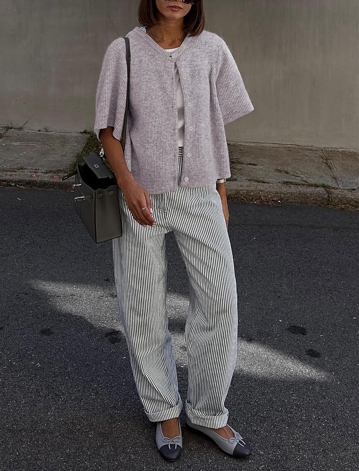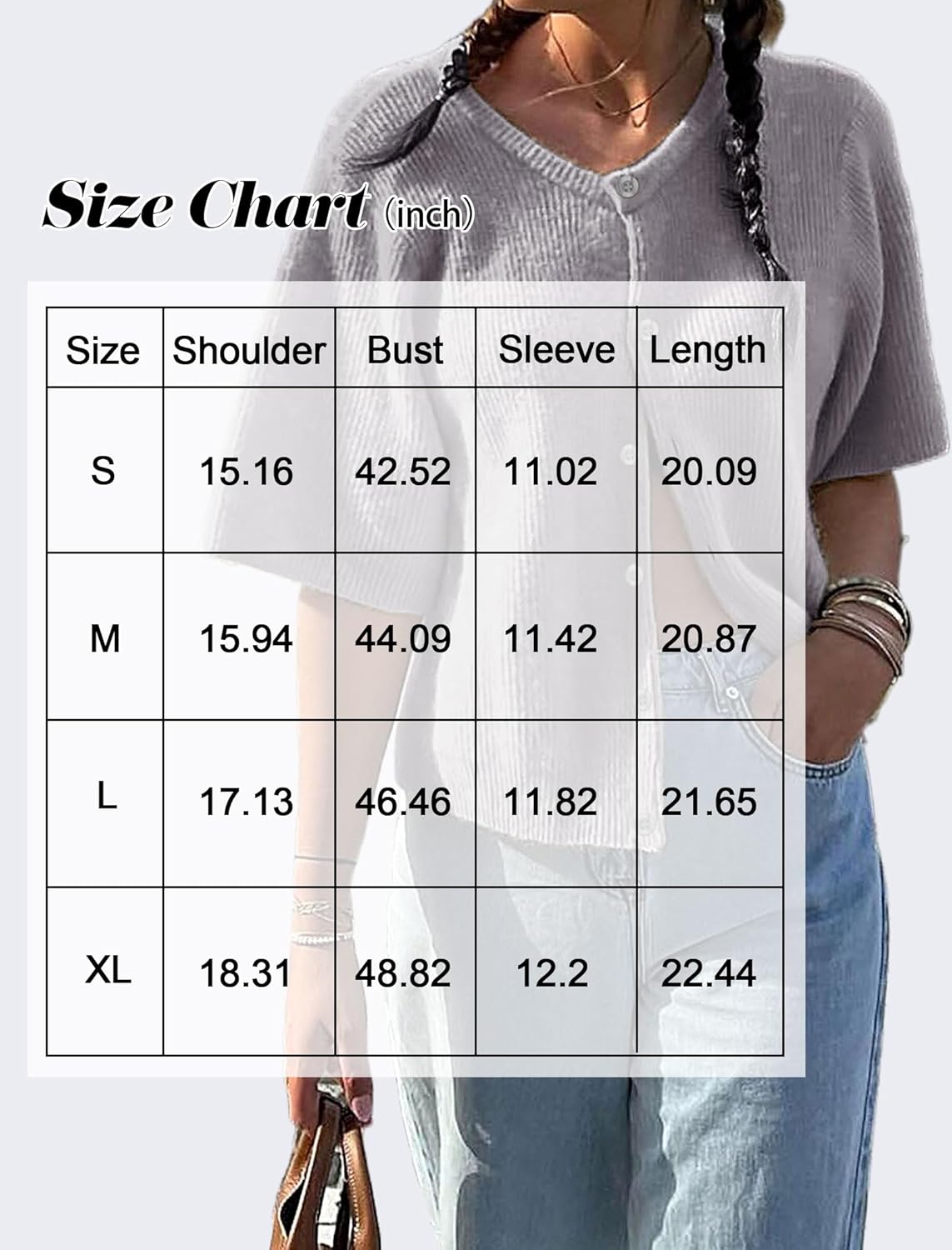 Alljoin Womens Knitted Crop Cardigan Short Sleeve Solid Open Front Button Down Y2k Summer Outwear Top Tee ShirtMaterial: Alljoin short sleeve cardigan sweaters for women are made of 18% Acrylic, 11% Nylon and 71% Polyester fabric; soft, stretchable, breathable, comfortable to wear, without itchyFeatures: Women knitted cardigan shirt, Y2k knitted crop top, women open front knit crop top, women casual knitted shirt, women knitted cropped shirt, Y2k girls summer knitted tee shirt, short sleeve, button down, open front design, women loose knitted shirt is charming and flattering to wearOccasions: This basic yet stylish cropped cardigan for women is suitable for daily wear, casual outings, shopping, office, vacation; the short sleeve sweater women is especially suitable for wearing in an air-conditioned room or cool summer eveningsMatching: This Y2k womens cardigan sweaters can be matched with jeans, pants, striped pants; t-shirt, crop top, tube top, tank top; necklace, heels, sneakers, etc. The women's cardigan is a versatile piece for spring, summer, and fallNotes: Hand wash or gentle machine wash with a laundry bag recommended. Please check our size chart before you ordering this button up cardigan women