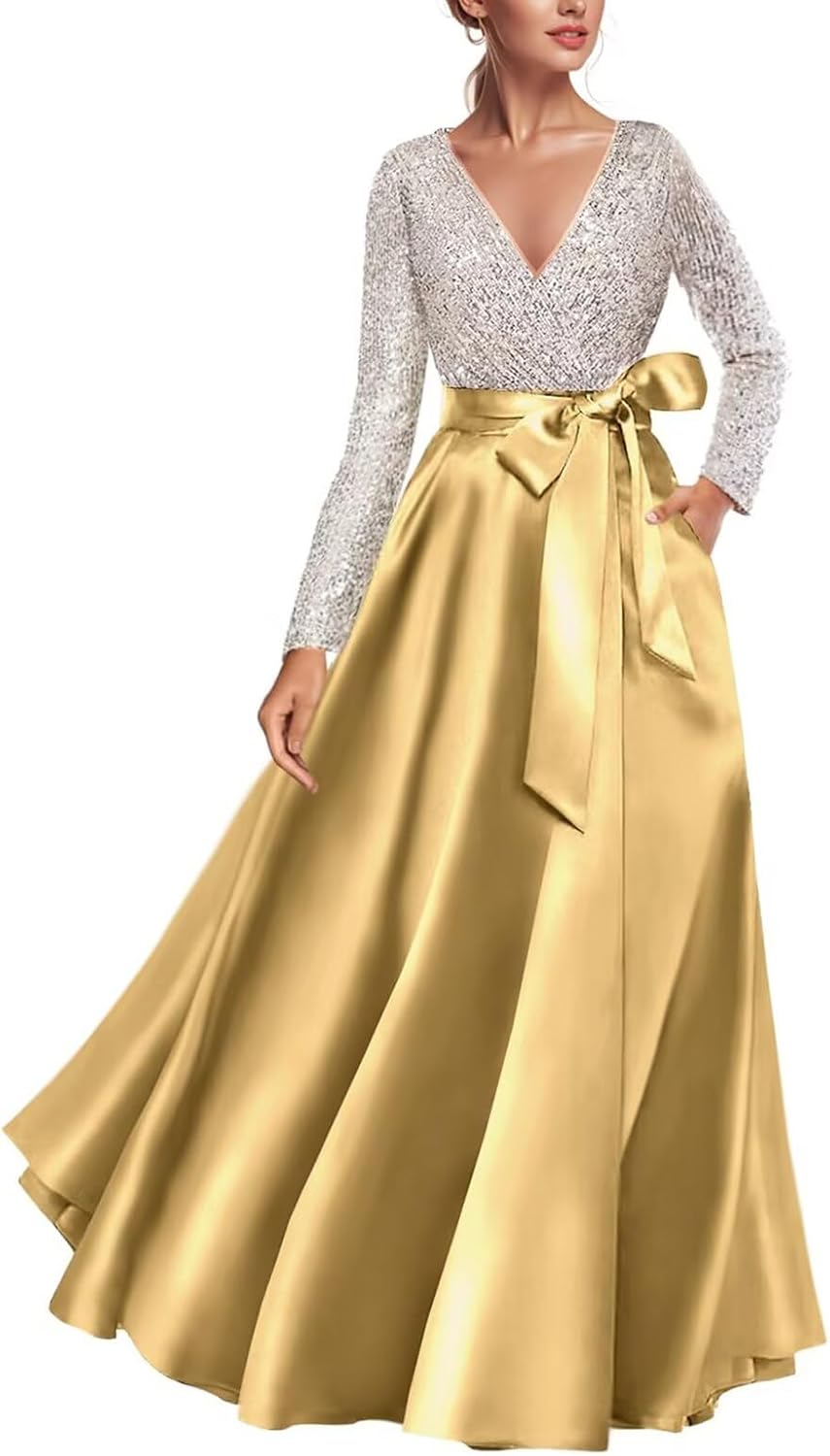 | Embellishment Feature | Back Zipper, Bow Belt, Long Sleeves, Sequin, with Pockte |