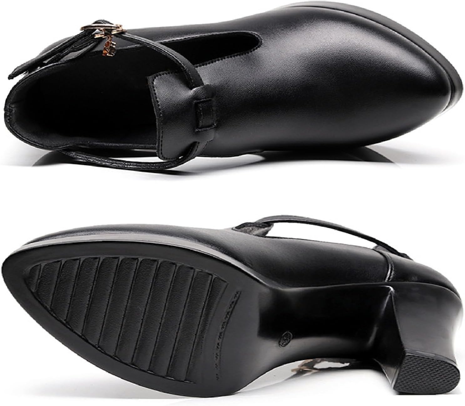 Women's side hollow high heels Gender: Female Material: PU Lining: PU Heel: Thick bottom heel Wearing style: Ankle strap Color: Black 【Warm Tips】 1. Due to different screen displays, the color may be slightly different. 2. Due to manual measurement, there may be a slight error in the size