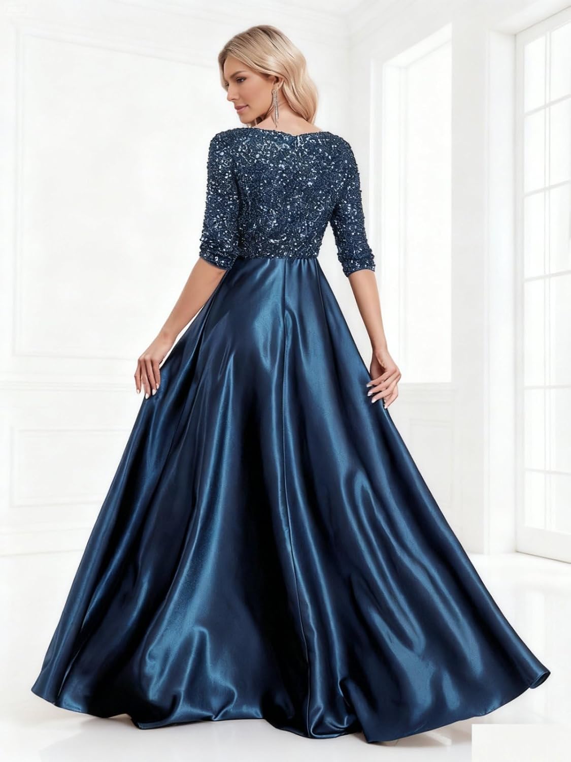 Welcome to our store! Product Features: Prom DressesFabric: SequinsSilhouette: A LineNeckline: V NeckSleeve: 3/4 SleeveHemline: Floor LengthClosure: Zipper BackWarm Tips: It is very important to know how to choose a proper size for shopping online, especially bridesmaid dress,prom dress,mother of the bride dress,Bridesmaid dress,formal gowns and so on. To help you get the dress with perfect fit, please follow the steps below to find the correct size.Measure your waist, bust, hips and compare with our own size chart.If these measurements do not belong to one standard size, choose the bigger one.Normally, no one's figure is in exact standard size.If the dress size differs little from your own size, you could find a tailor to make a minor alteration.All our dresses come with additional fabric in the seams.If you want the dress to be customized, please provide us following measurements.1.Full Bust _____ cm/inch.2.Waist _____ cm/inch.3. Hips _____ cm/inch.4.Hollow to floor(bare feet) _____ cm/inch.5.Heel height _____ cm/inch.6.Phone Number _____7.The date you need the dress _____Kindly Note:Be aware that the colors in the photograph may not accurately depict the exact color due to differences in lighting or computer displays. Send Back:Normally, all reasonable send back requests will be agreed.If any questions about the dress(es) you ordered, please feel free to seller within 7 days after you receive it, we will definitely provide you a best solution.Send Back items must be completed,unused,unwashed with original tags and packaging.