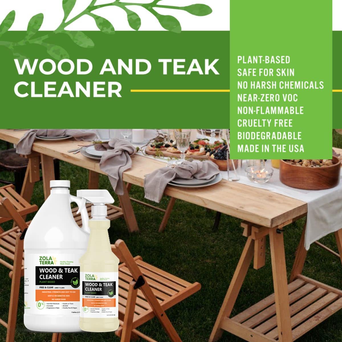 | Special Ingredients | ZOLATERRA WOOD & TEAK CLEANER is a ready-to-use cleaner that works best when applied at full strength. Cleans teak wood furniture in one application without any odor, gloves, or special handling. |