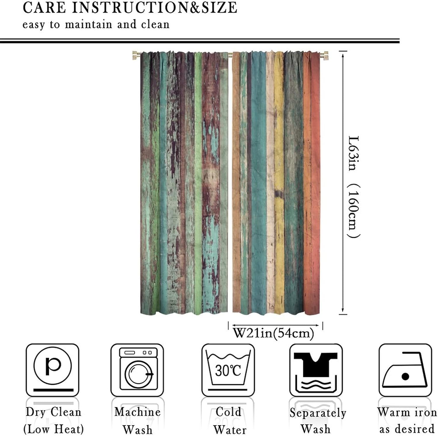 • ❀Size: Each panel measures 21" (W) x 63" (L) (53.5cm x 160cm), total size: 42" (W) x 63" (L) (107cm x 160cm). The panels have a 3" rod pocket designed to fit a standard curtain or decorative rod.