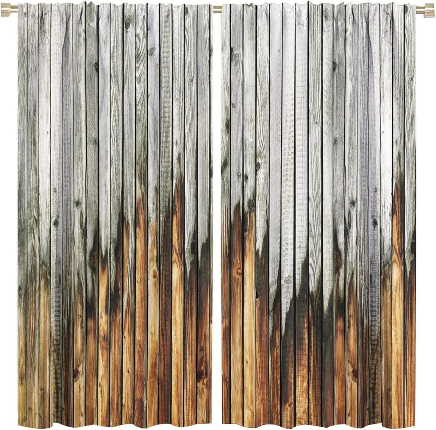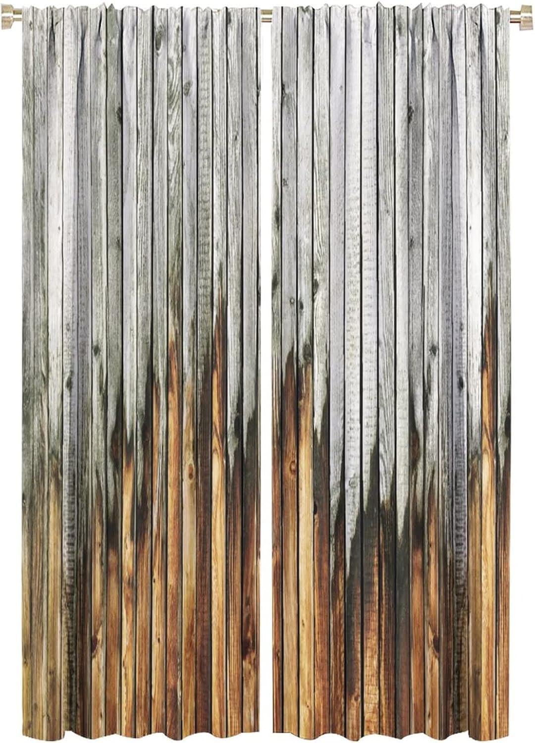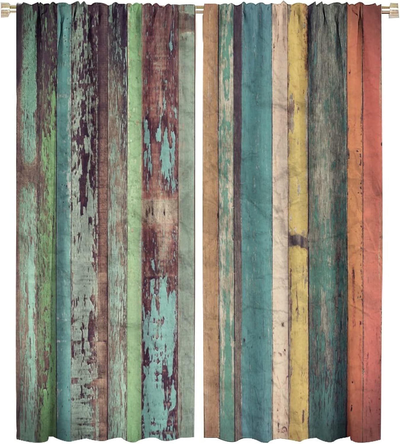 Wooden Print Kitchen Curtains,Rustic Wooden Board Pattern Country Life Theme Vintage Style Fabric Curtains for Bedroom Living Room Colorful Window Drapes 2 Panel Set Total Size 42" x 63"