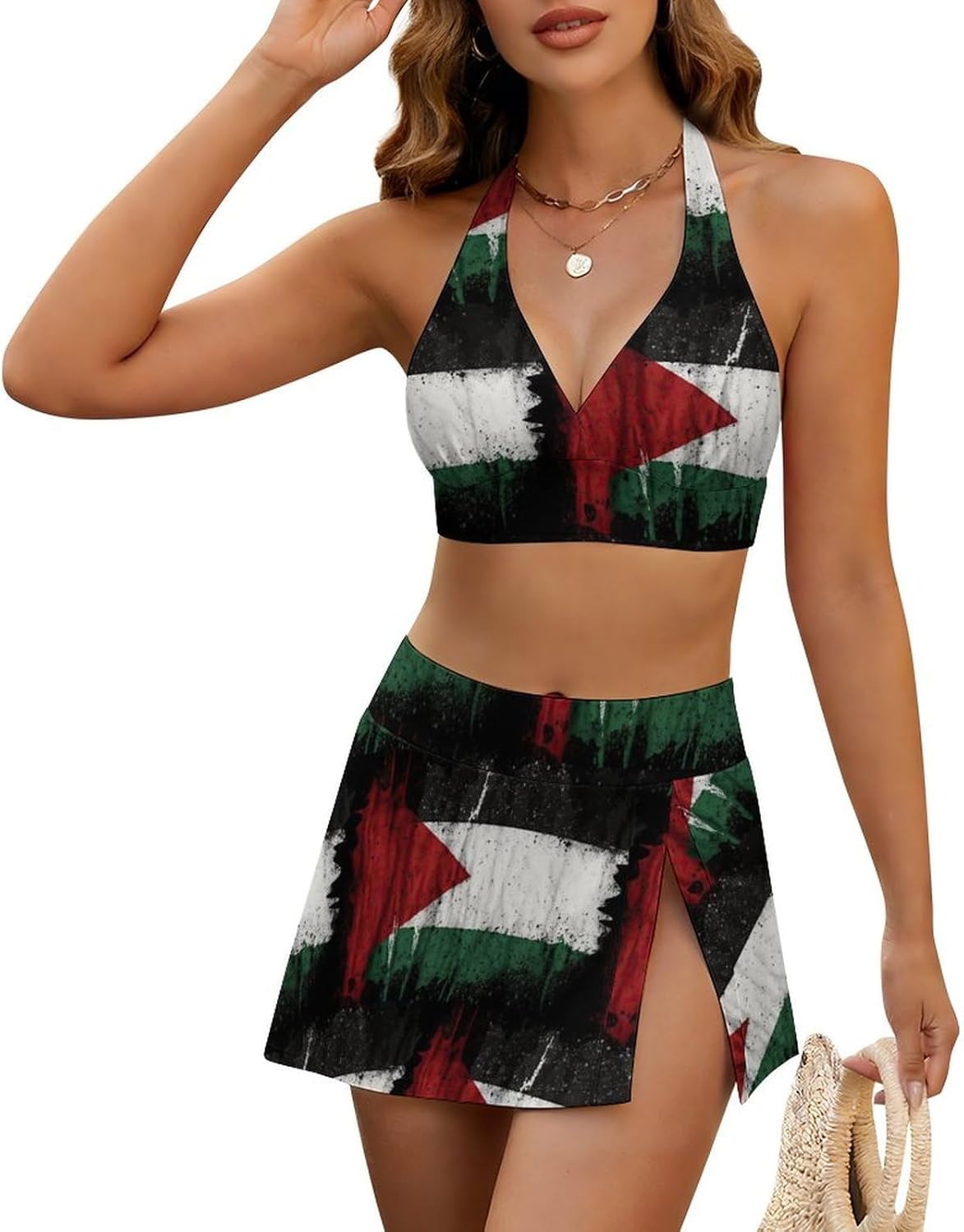 This women's mini-skirt swimsuit set is soft,lightweight,and simple yet practical,making it ideal for relaxation.Made from stretchy fabric,it ensures comfort and a sexy look during activity.The elegant V-neck design will make you feel more confident and glamorous on the beach.