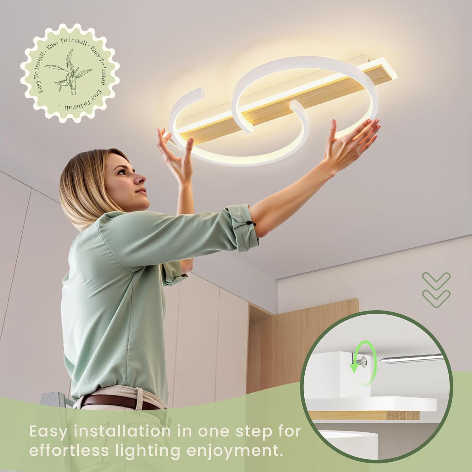 • Premium Materials:Crafted with a soft, light-transmitting acrylic lampshade, finely textured natural bamboo wood accents, high-brightness LED chips for stable performance, and a sturdy metal base—this led ceiling light is a perfect blend of quality, texture, and modern style.
