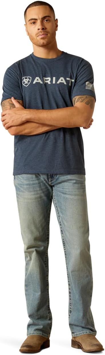 Rep your favorite brand with this super-soft graphic tee. Featuring an Ariat logo across the chest and a flag graphic on the arm, it's an easy standby that takes the guesswork out of what to wear.