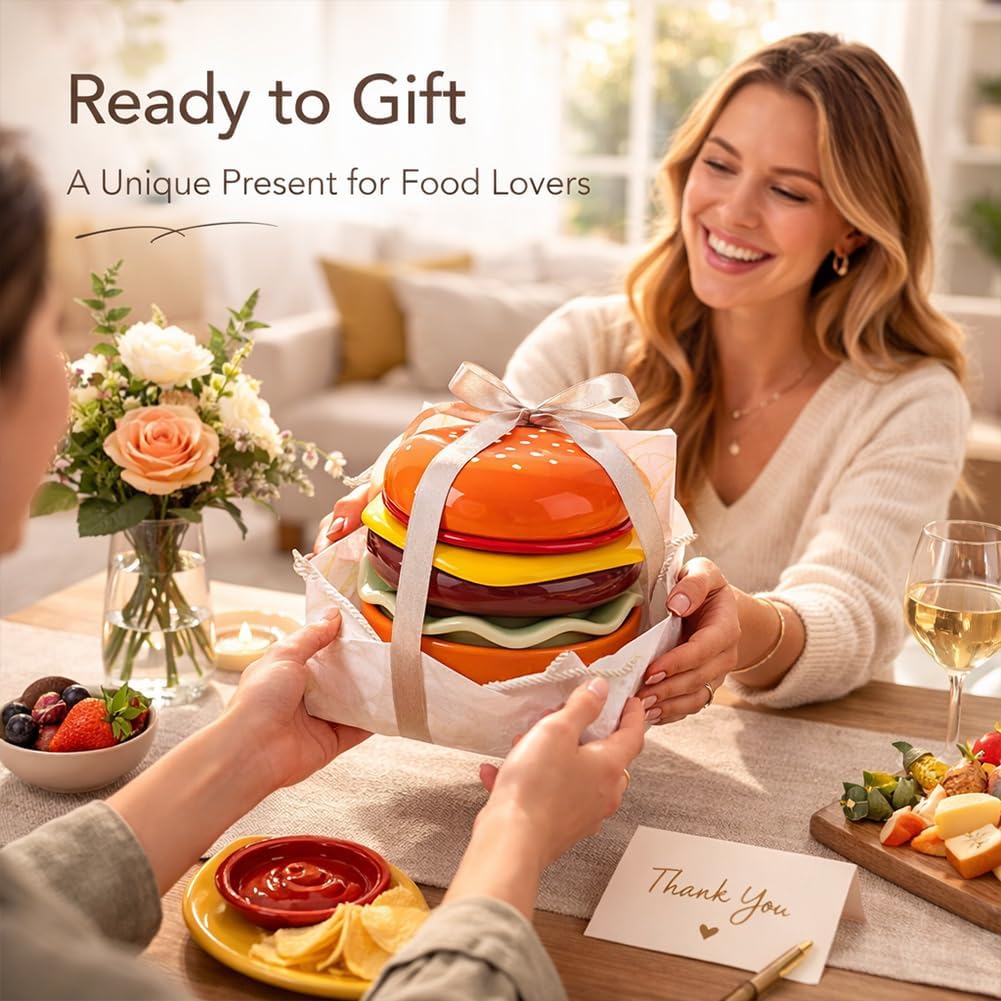 • Ready-to-Gift Set for Food Lovers & Party Hosts: Complete with a reusable gift bag, this novelty burger plate set makes a unique and thoughtful present for housewarmings, birthdays, holidays, or anyone who loves creative dining. A guaranteed conversation starter that blends practicality with playful charm.