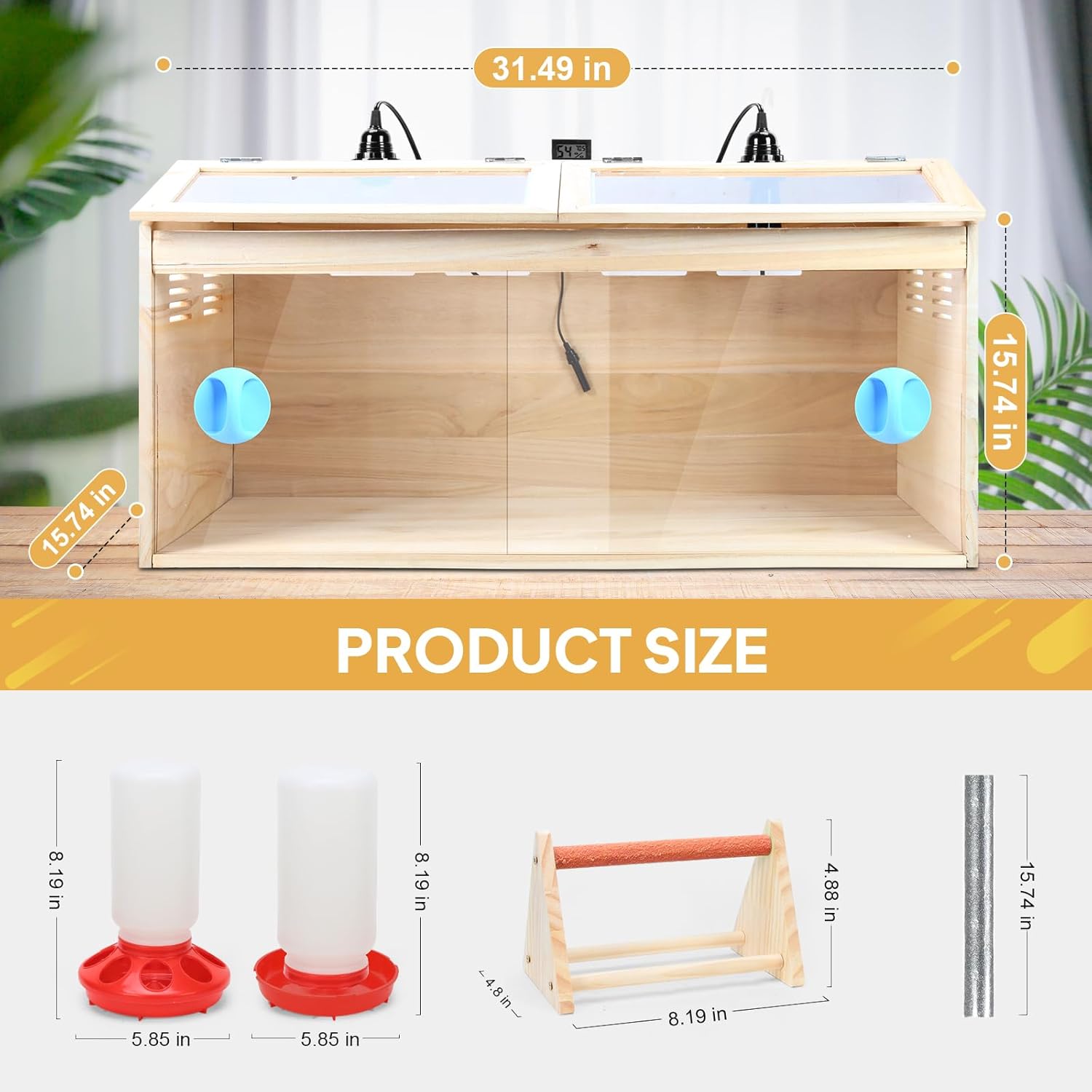 Chick Brooder Box Chick Starter Kit,Large Wooden Brooder Box for Chicks with Waterer Feeder Perch Thermometer and Heat Lamp Set,Baby Chicken Supplies for Duck Quail Hamsters and Lizards
