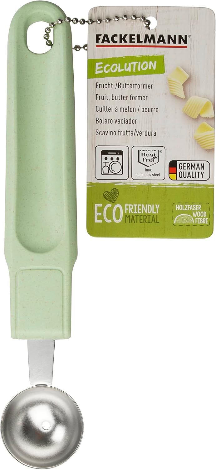 Fackelmann Ecolution Ball Cutter - Fruit & Butter Maker Made of Wood Fibres, Organic Plastic and Stainless Steel - 18 x 3 cm Parisian Spoon in Mint Green