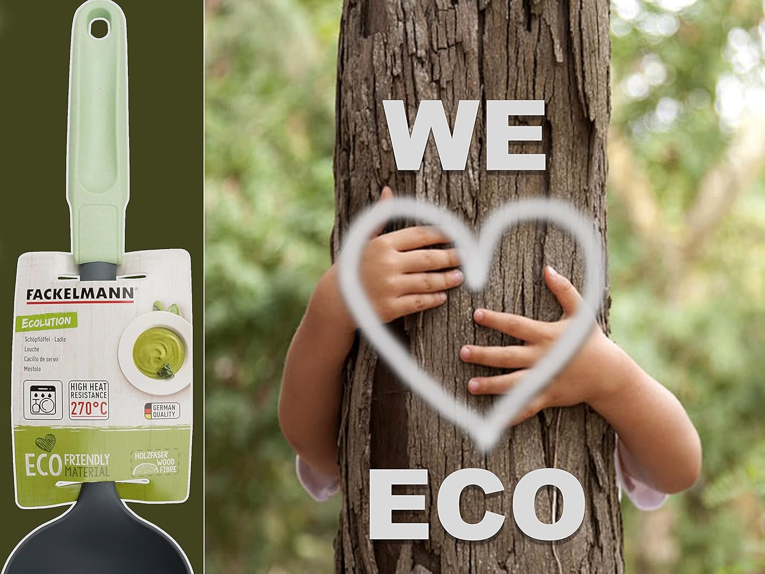 Sustainable ball cutters made of stainless steel, wood fibres and organic plastics With our Parisian spoon you can create delicious decorative balls from your favourite fruit, vegetables or butter in no time. Thanks to the use of stainless steel, each ball can be shaped super easily and removed from the cutter. The mini balls are an absolute eye-catcher at any brunch or dinner together. A practical thumb recess in the handle prevents slipping, resulting in evenly shaped balls and safe working in the kitchen. Decorate the table after work? No problem, because the fruit and butter maker is dishwasher safe. The Ecoultion series from Fackelmann is deliberately aimed at people with a sense of sustainability and environmental awareness. All plastic elements of the practical kitchen utensils are made from bio-based carbon of the rhizinus bean, wood fibres and bioplastics. The uniform look in stone grey and mint green underlines the use of sustainable materials thanks to its subtle natural tones. Anyone who owns the entire range will no longer look for the right tool in the kitchen. Each kitchen utensil in the range also has a practical hanging loop for easy storage on the kitchen wall or hanging shelf.
