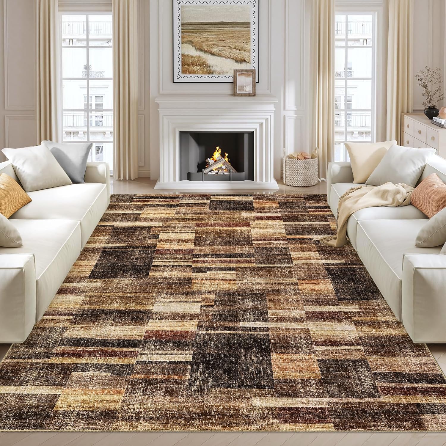 Modern Geometric Washable Area Rug – Non-Slip, Low Pile Accent CarpetWant to Instantly Modernize Any Room?Imagine a stylish geometric rug that brings a fresh, contemporary vibe to your bedroom or office. How much more inviting and up-to-date could your space feel with just one simple addition?Wishing for a Rug That's Just as Easy to Clean as It is Eye-Catching?Picture a machine washable, stain-resistant carpet that always looks fresh—no matter what life throws at it. Wouldn't cleaning up after kids or pets finally be stress-free?Concerned About Safety in Busy Spaces?Think about a soft, non-shedding rug with a non-slip backing that stays put, even in high-traffic areas. How much peace of mind would you have knowing your family and guests are always safe?Specification:Material: 100% PolyesterColor: Brown/Red/Khaki Grey/Blue/Multi-Color/GreySize: 2x6 FT/5x7 FT/8x10 FT/9x12 FT/10x13 FTApplication: Bedroom/Living Room/Office/Kitchen/Dining RoomPacking List:1 x Area Rug1 x Instruction ManualNote:When area rug arrives, there may be temporary creases, you can roll the washable rug in the opposite direction and lay it flat on the floor while applying pressure to the carpet, the creases will disappear completely in a few days.Measure your space and choose the appropriate size. Ensure that the carpet can cover the area you want and coordinate with the surrounding furniture.