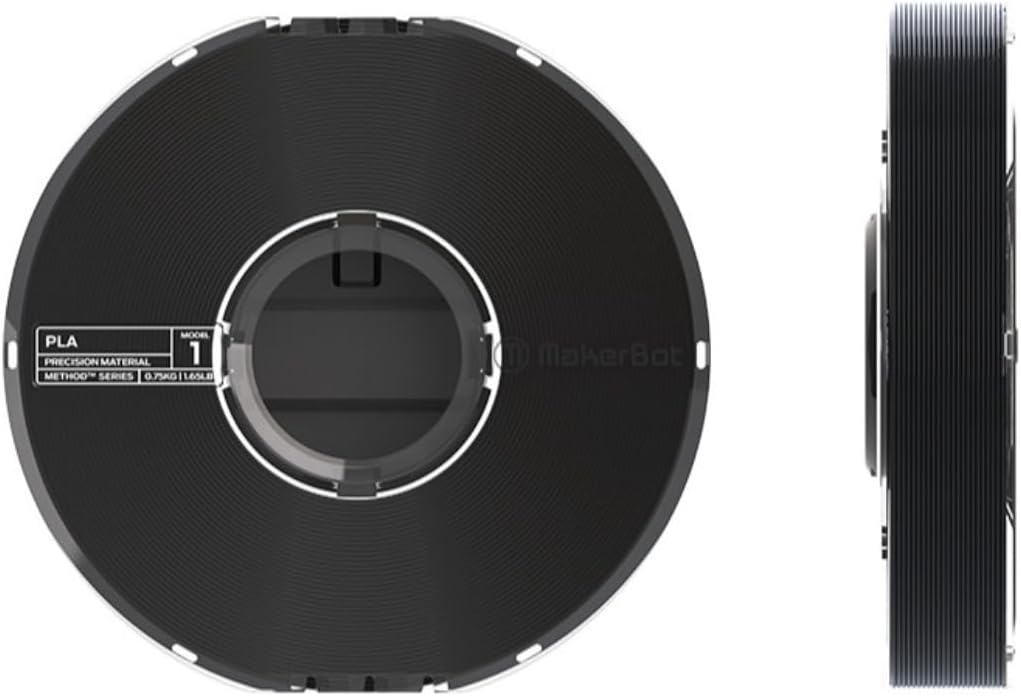 MakerBot PLA Filament for Method 3D Printer - Corn-Based Plastic (True Black, 0.75kg)Method PLA Filament (0.75kg, 1.65lb) is designed for fast, hassle-free 3D printing of rigid and glossy parts—ideal for early-stage concept models. Easy to use and safe for office or classroom environments, PLA offers clean performance with minimal odor. It pairs perfectly with breakaway supports for faster printing and easier removal, streamlining your prototyping workflow. Made from renewable corn-based plastic, Method PLA is a smart and sustainable choice for everyday prototyping.Office-Friendly MaterialPLA filament is non-toxic with minimal odor, making it ideal for use in office, classroom, or studio environments.Rigid and Glossy FinishProduces parts with a strong, stiff structure and a clean, polished appearance—perfect for showcasing early design concepts.Fast Printing with Breakaway SupportsCompatible with breakaway support material that prints quickly and removes easily, reducing post-processing time.Easy to UsePLA is known for its low warping and reliable print quality, making it suitable for beginners and professionals alike.Eco-Conscious CompositionMade from corn-based plastic, this PLA is offers a more sustainable prototyping solution.