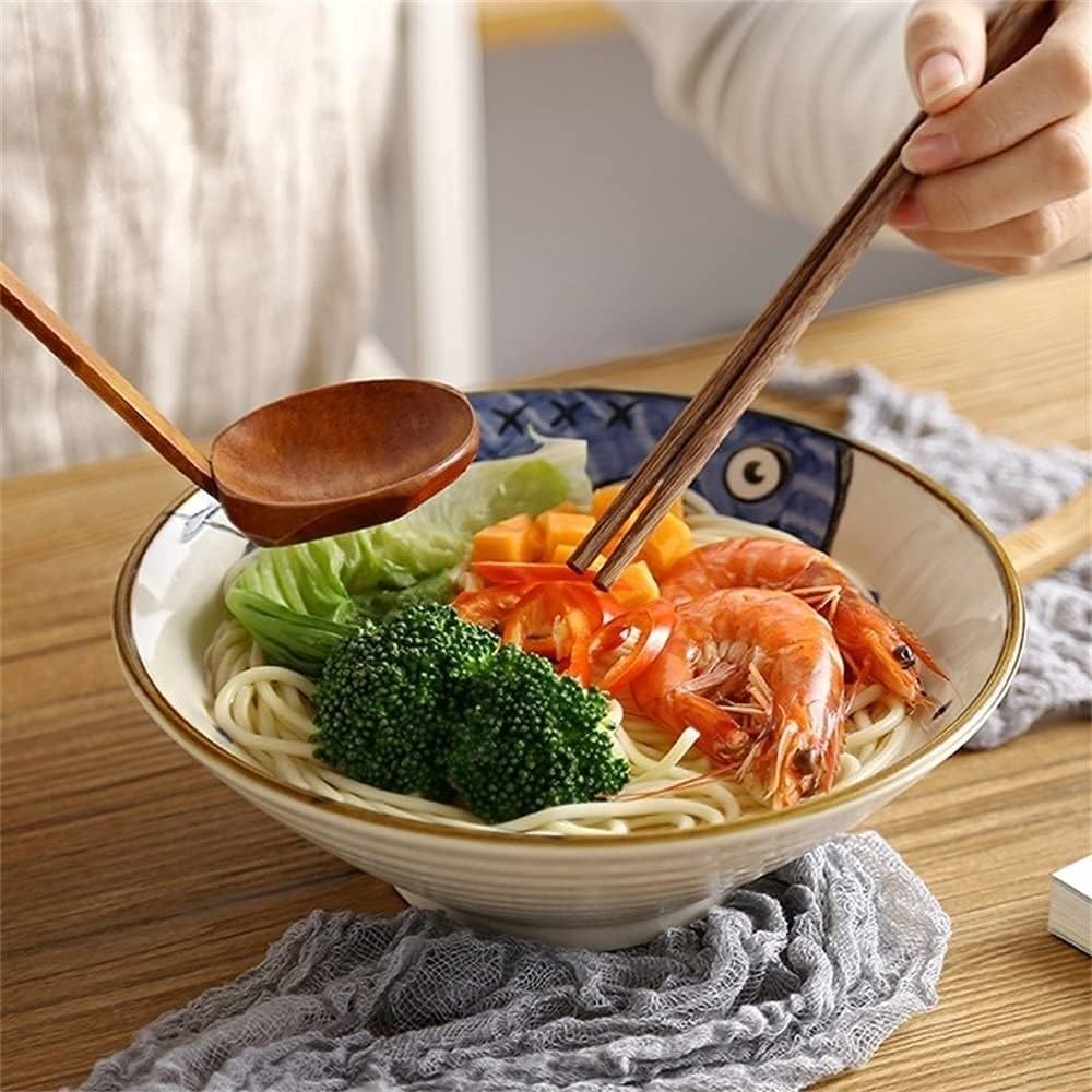 In order for you to receive the bowls in perfect condition, we will use impact resistant foam to protect the bowls.★ Name: Hand-painted fish bowl★ Material: ceramic★ Color: Hand painted blue/red fish.★ Origin: Chinese ceramic capital, Jingdezhen★ Pieces: 1★ Size: 9 inch soup/ramen bowl: diameter 23.2 cm, height 9.8 cm, capacity: 1800 ml, weight 968 g.★ Size: 8 inch salad/noodle bowl: diameter 20.5 cm, height 7 cm, capacity: 950 ml, weight 650 g.★ Style: Japanese style, simple and elegant, suitable for all occasions, great size for all kinds of party dishes.Fall in love with cooking and cooking, enjoy life and delicacy.Started with a meal, from the kitchen to the dining room.dishes, just shop, cook for the best life.We have a variety of styles of tableware, welcome to visit the store.★ Why choose tableware?1. All our ceramic tableware is made of AB grade ceramic/porcelain, meets all requirements of international standards for exposure to lead, cadmium and bisphenol A. Take good care of it, it can be used for years .2. Our tableware is a work of art made entirely by hand. (Each piece has slight difference. This is the characteristic of ceramic products.)3. Different from wood and plastic, ceramic/porcelain does not absorb bacteria and odors. Keep your food fresh.4. Compared with stainless steel, it will not be deformed and comfortable for ha