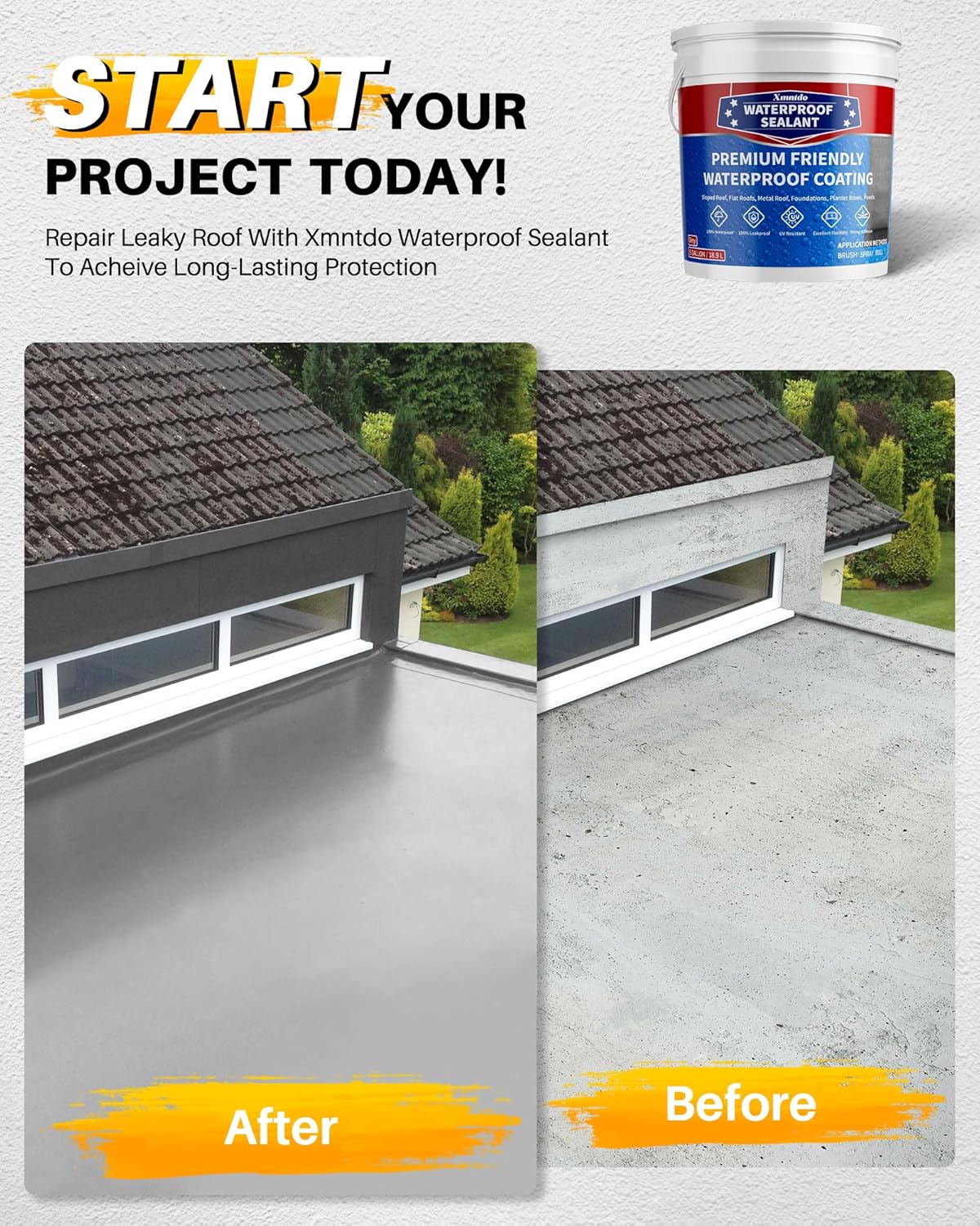 Waterproof Sealant 5 Gallon, Light Grey, Multi-Surface Leak Repair Coating, Durable Water-Based Rubber Roof Coating, Polyurethane Sealant for Concretes & Constructions