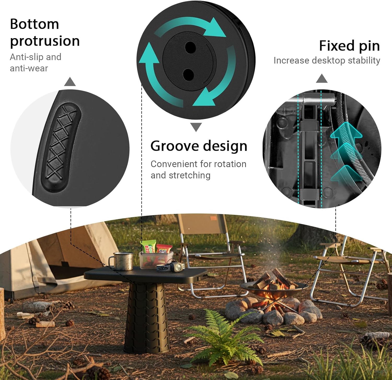 As a creative outdoor folding table, it can be used as a table and stool. When you only want to have a rest and sit down, just remove the table top and then use as a collapsible stool. Collapsed size is only 15 x 12.2 x 2.8 inches, and unfold size is 24.4 x 18.9 x 15 inches, the tabletop's width is 24.4 inches which can place most food and drinks.
